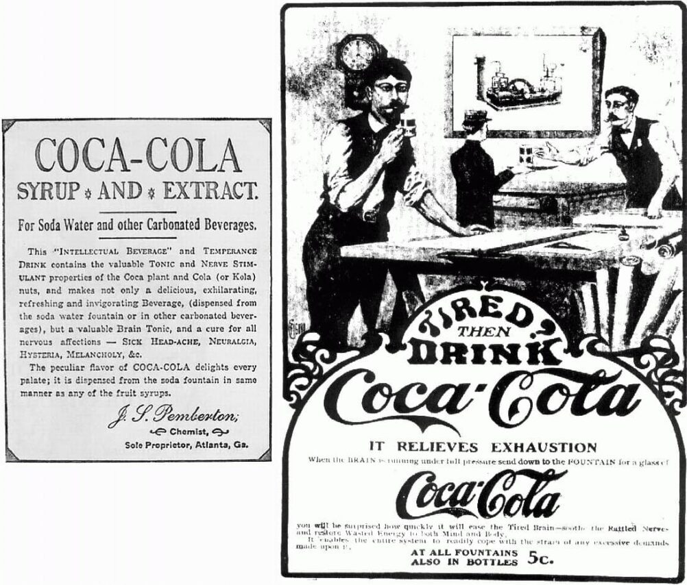 У липні 1886 року фармацевт Джон Стіт Пембертон з Колумбуса, штат Джорджія, винайшов оригінальний напій Coca-Cola, який рекламувався як дієвий засіб від головного болю та нервових розладів, і мав продаватися в основному у аптеках як лікувальний напій.