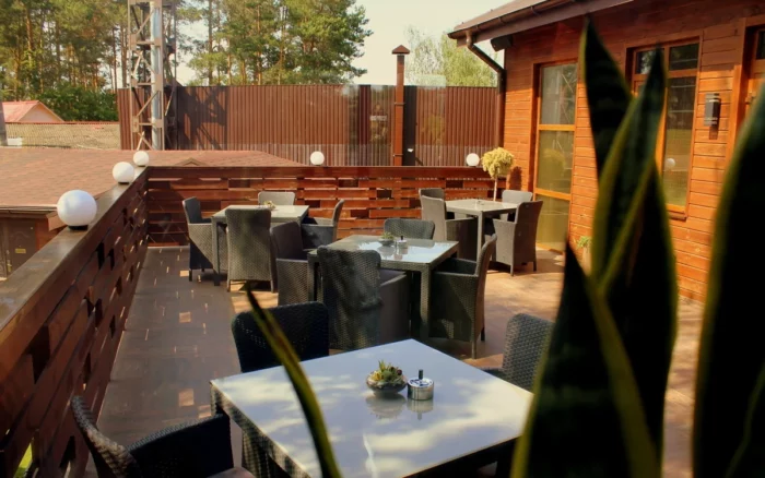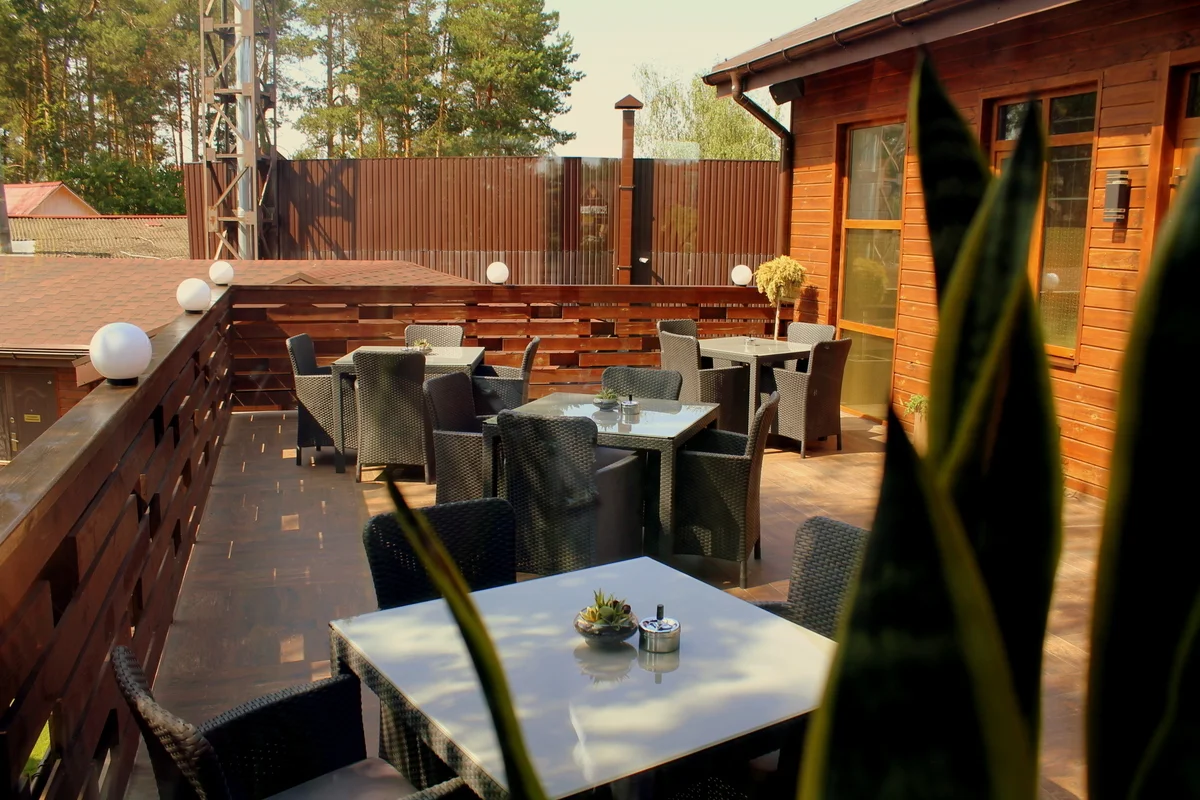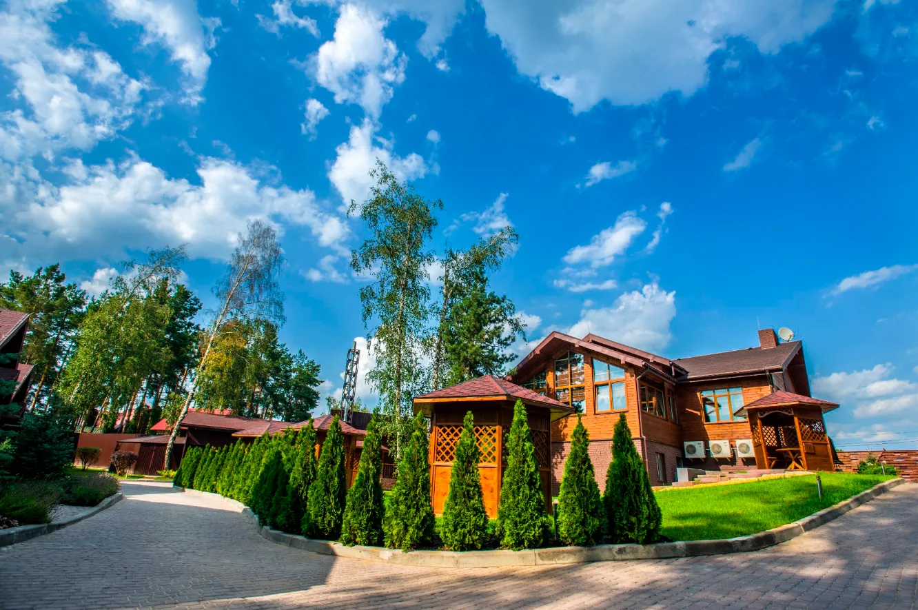 «Лише 20 кілометрів від Києва, і на вас чекає велика зелена територія, три унікальних комплекси, оздоровчий чан, лазня «по-чорному», ресторан з літньою терасою та альтанками, що ідеально підходить для проведення різноманітних заходів».