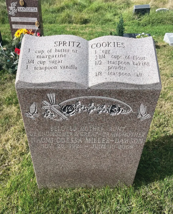 Ідея книжки народилася не як гастрономічний проєкт. Під час пандемії COVID-19 Розі Ґрант, студентка магістерської програми з бібліотекознавства в Університеті Меріленду, проходила стажування в історичному Конгресовому цвинтарі у Вашингтоні. Вона створила TikTok-акаунт @ghostlyarchive, щоб розповідати про життя цвинтаря, а згодом натрапила на перший надгробок із рецептом — спринц-печиво Наомі Міллер-Доусон у Брукліні.