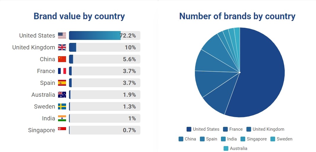 booking.com залишається найдорожчим у світі брендом відпочинку та туризму з вартістю бренду у 10,4 мільярда доларів США. Airbnb (вартість бренду зросла на 23% до 6,9 млрд доларів США) і Trip.com Group (вартість бренду зросла на 31% до 4,4 млрд доларів США) зберігають друге і третє місця відповідно.