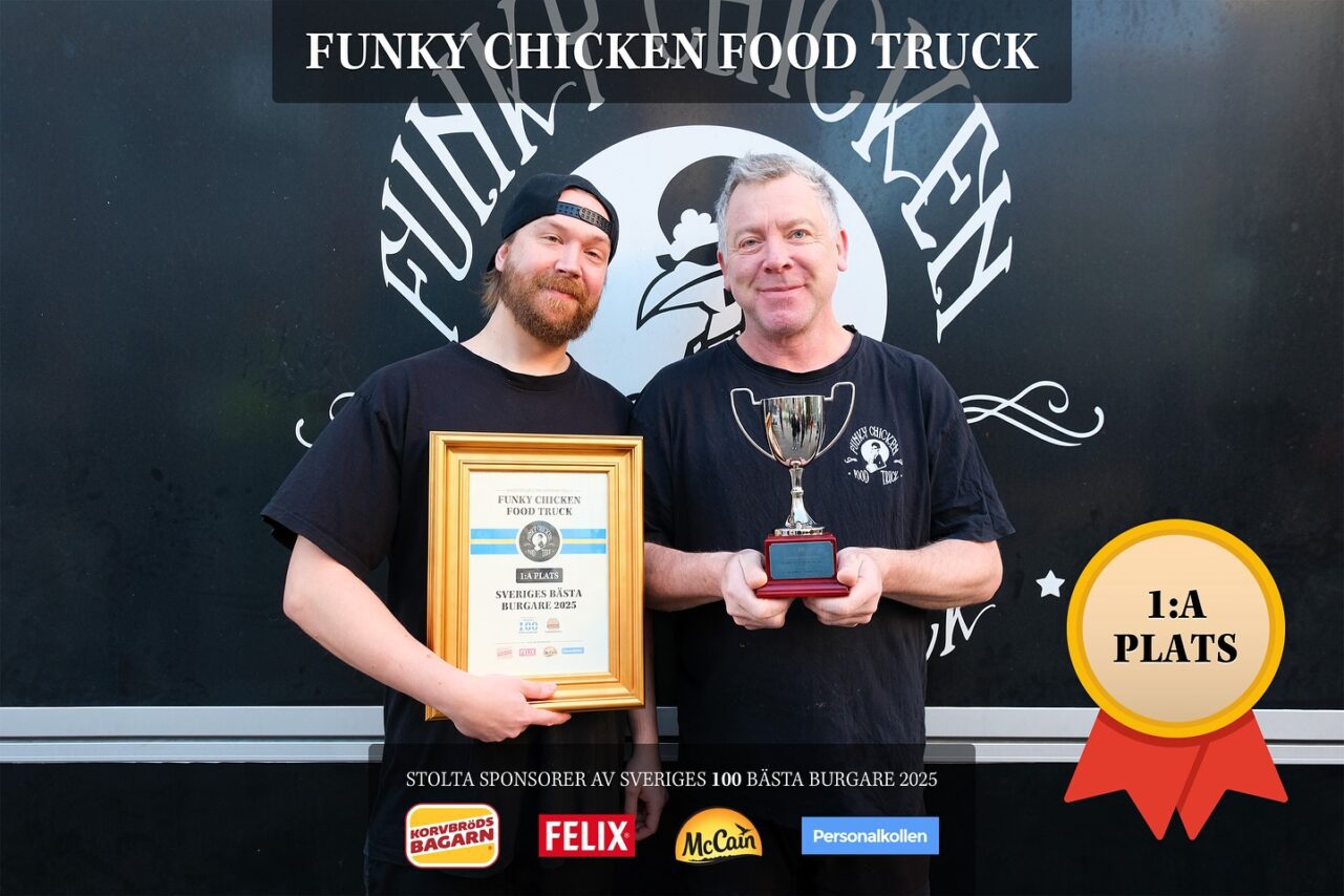 Фудтрак Funky Chicken — це символ сміливих смаків та багато індивідуальності. Бургери виготовляються зі шведської яловичини, свіжозмеленої та ідеально підсмаженої на грилі, а потім поєднуються з пухкими булочками та щедрими шарами сиру, соусів та маринованих огірків. Страви вишукані, але водночас грайливі, з характером вуличної їжі, який передає радість від поїдання бургера обома руками. Кожен шматочок соковитий, неохайний та сповнений характеру — саме таким, яким має бути чудовий бургер.