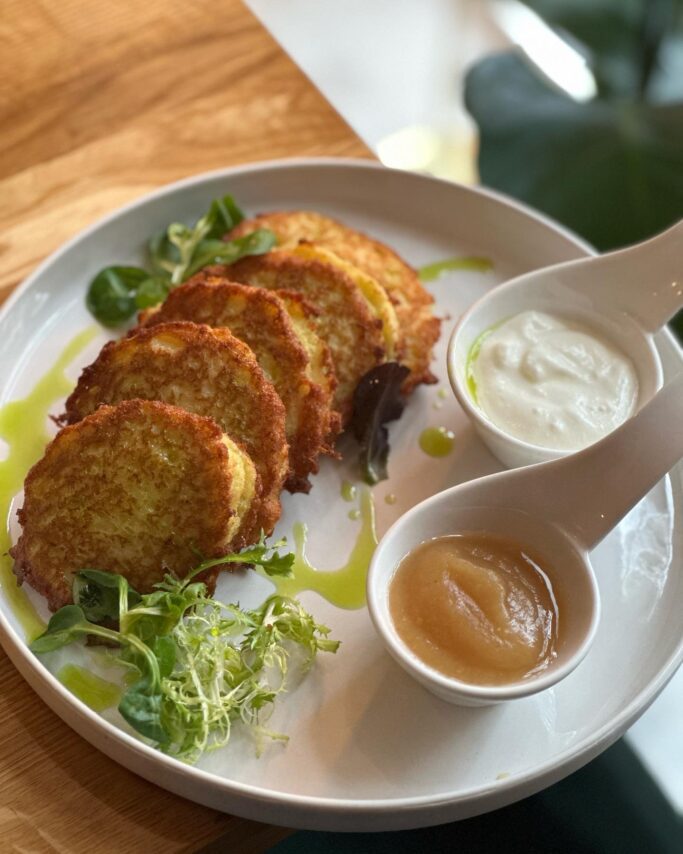 Це перший український заклад, який відкрили у центрі Дюссельдорфа. Він невеликий, але затишний. На столах стоять свіжі квіти, й до гостей виходить усміхнений шеф-кухар Тарас Хирний і питає, чим пригостити. У закладі пропонують борщ, вареники, голубці, сирники та медовик.